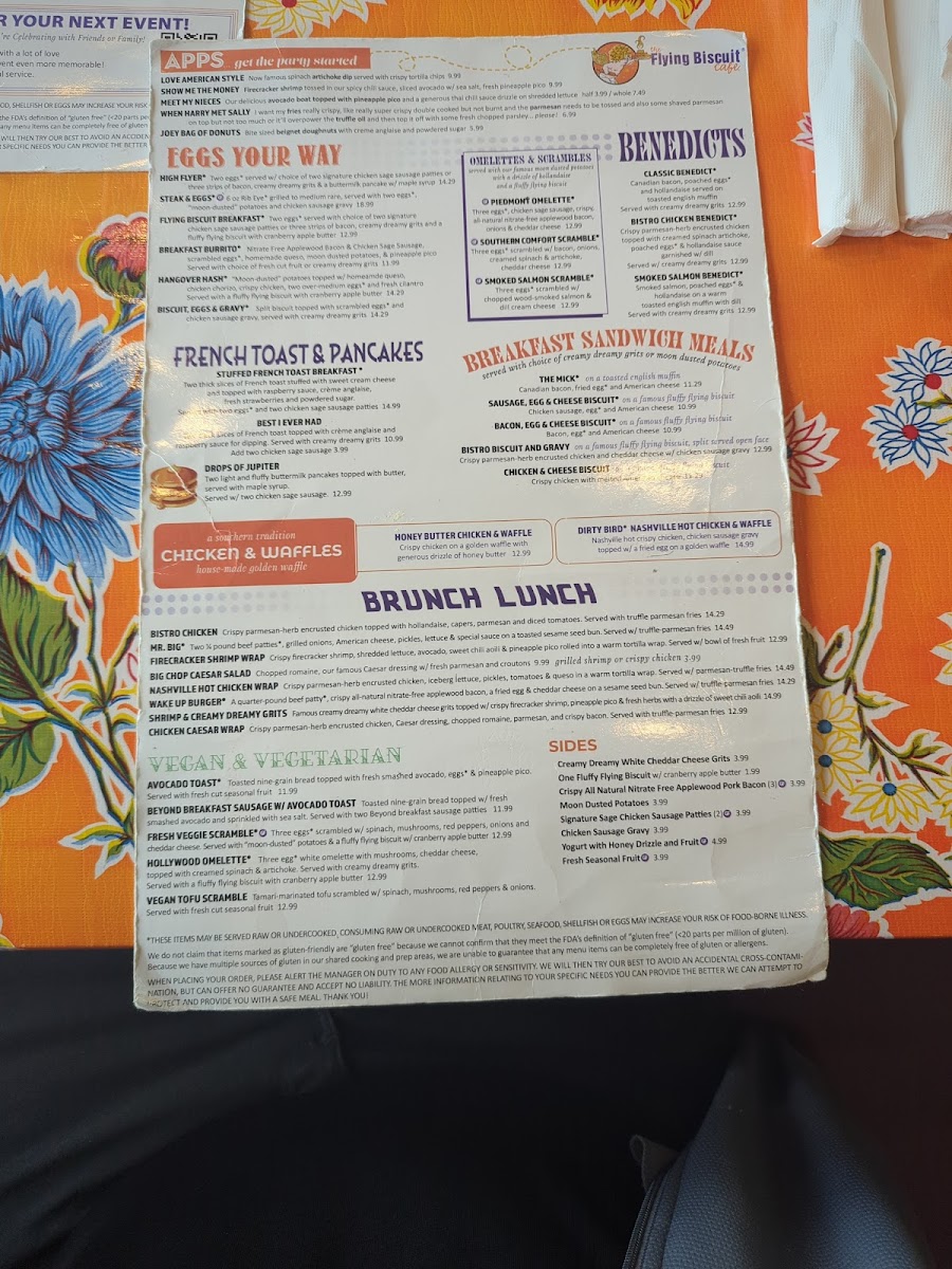 “ I was in town for a concert and we wanted to get breakfast before heading back home. Looked up what restaurants were near by, choose a restaurant that when we got there, the line was out the door. Nope...not waiting in line for breakfast, so I went back to look at restaurants near me, and The Flying Biscuit Cafe showed up. Wasn't too far from where we were, so off we went. We were happy we did! The Flying Biscuit Cafe was a fun find for us! The place was clean, the staff was very friendly and helpful. The food came out of the kitchen quickly, fresh and hot!!! Parking was plentiful and free! I look forward to breakfast at The Flying Biscuit Cafe on my next visit to Houston! ”