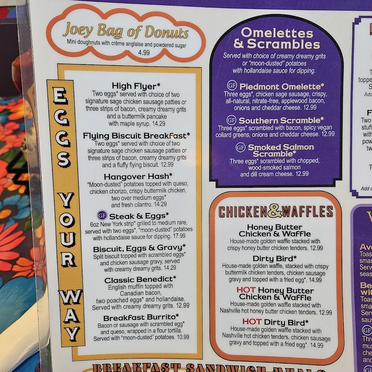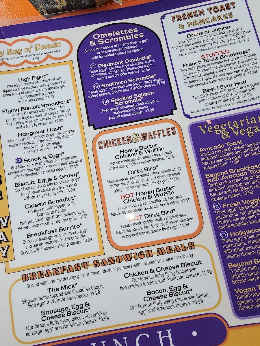 The menu at The Flying Biscuit Cafe is packed with mouthwatering items. A highlight is the Joey Bag of Donuts—a cake donut drenched in a honey glaze and dusted with powdered sugar. Patrons have praised this sweet starter for its perfect balance, not being overly sugary while delivering on flavor. Additionally, breakfast favorites such as the Eggs Benedict, Nashville hot chicken wrap, and the smoked salmon scramble showcase the cafe's commitment to quality and taste. Generous portions at reasonable prices ensure that your appetite will be satisfied.